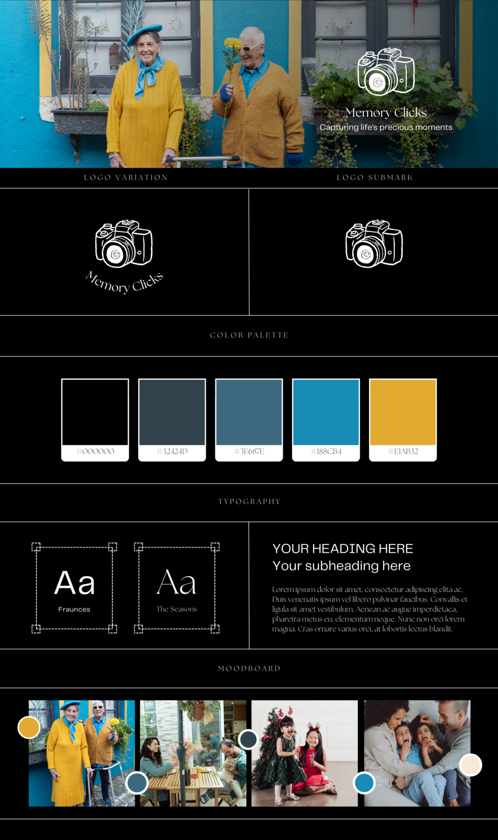 Unleash your creativity with our versatile Canva brand board template, "Photography" Whether you're a budding entrepreneur, a seasoned marketer, or anyone looking to establish a memorable brand, "Photography" offers the perfect platform to customize your brand's visual identity to suit your specific needs.
