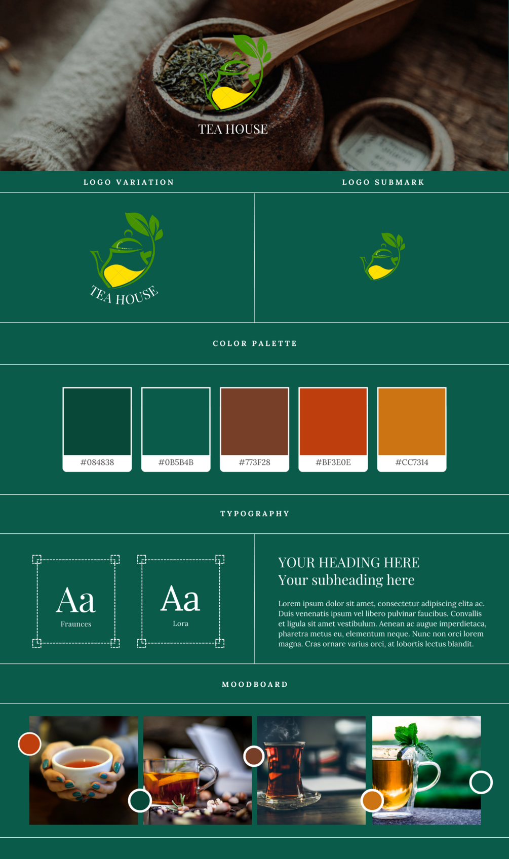 Tea House Brand Board - Customizable Canva Template